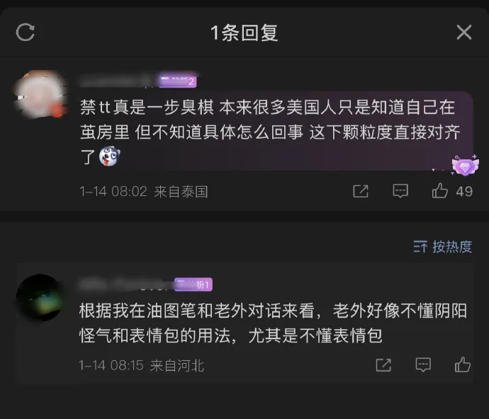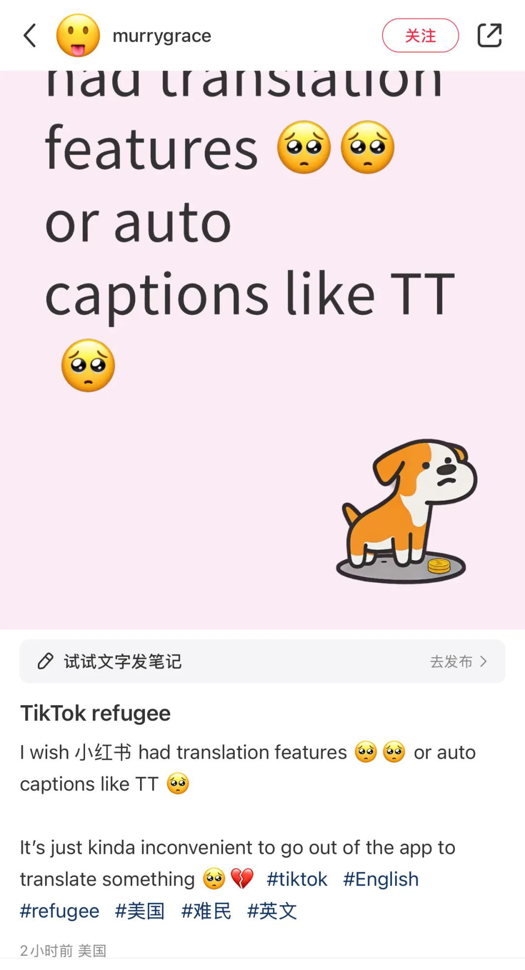 雖然目前小地瓜上的內容仍然以中文為主,但這絲毫沒有妨礙美國的網絡難民跨越一整個太平洋的距離,大老遠潤過來吃瓜,哪怕為此要自己去倒騰各種翻譯軟件甚至是學習中文。在逐漸熟悉了中國的社媒生態之後,很多美國網絡難民因此在小地瓜上發現了很多意外之喜。