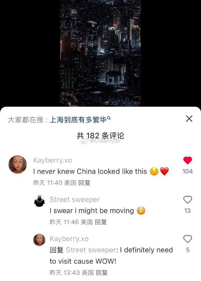 比如,有人因為看到上海灘的繁華夜景,而萌生了想要肉身潤來中國的念頭。