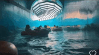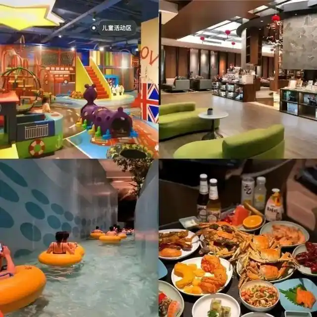 室外有泳池、温泉,上百個泡池;室內可以划船、漂流,還有人造浪。