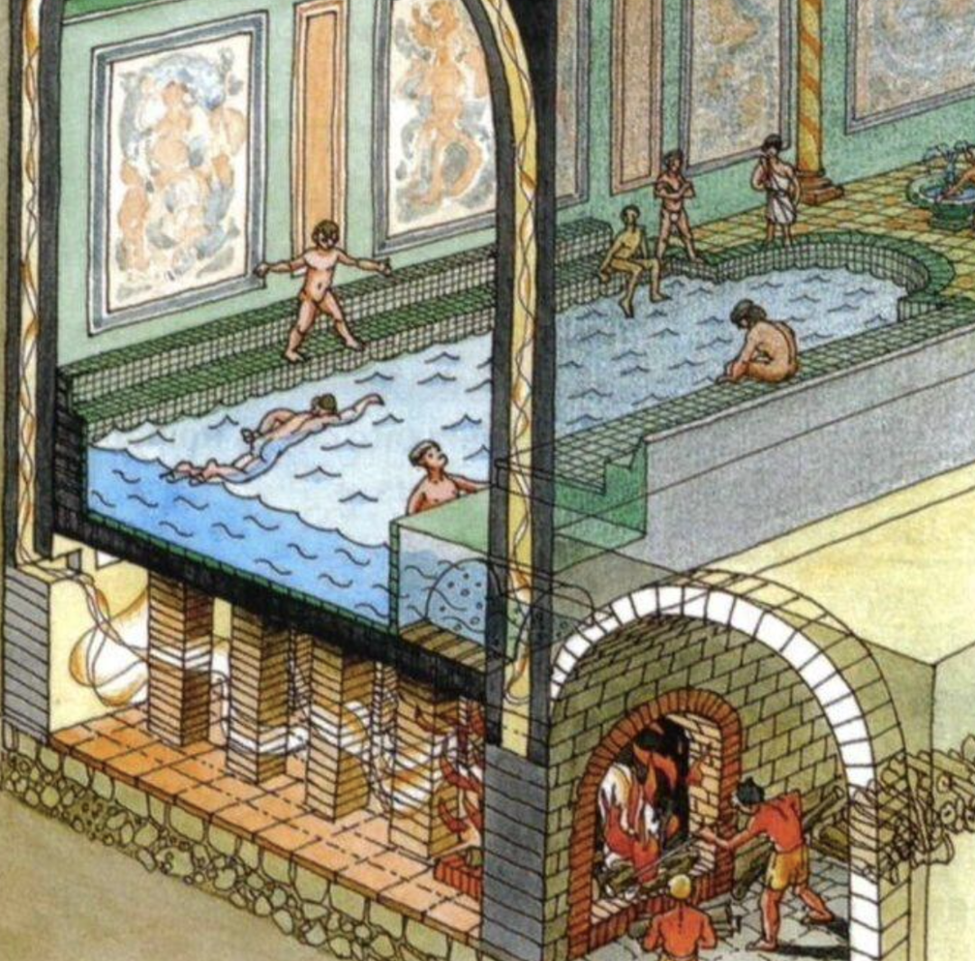 在羅馬時期,較大的公共浴場除了有各種温度的浴場外,還有休息廳、娛樂廳和運動場。