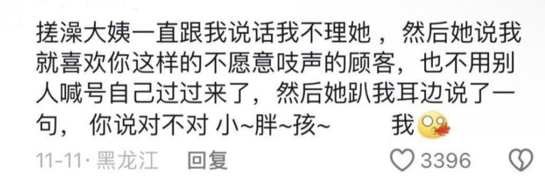 當然了,有個傳言倒是一直未被攻破。就是東北人均E人,即使在搓澡的時候也會和你聊上幾句,再加上很多東北人都自帶幽默基因,日常和搓澡師傅的對話就和搞笑段子一樣。