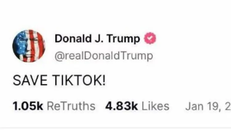 特朗普發呼籲挽救TikTok。(圖源:特朗普社交媒體截圖)