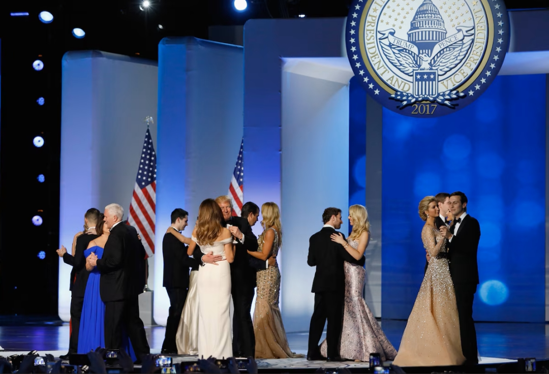 傍晚時,特朗普將會相繼參加三場就職舞會,包括總司令舞會、自由就職舞會和星光舞會並發表演講。
