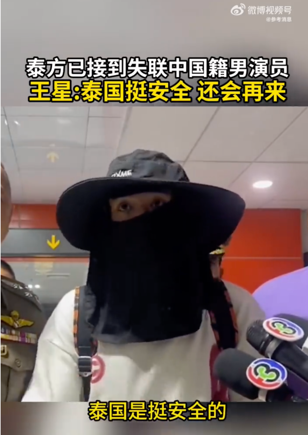 王星7日在泰國多名警方人員的陪同下,先用英語向泰國等方面表達了感謝,並且説泰國“安全”,“有機會再來”。
