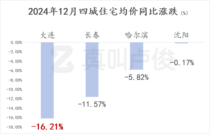 而綜合實力也不弱的瀋陽,12月同比跌了0.17%