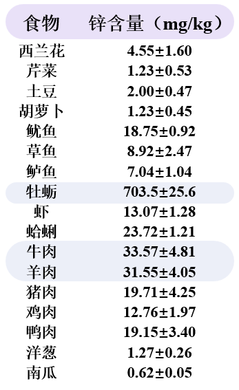 據統計,多種日常食物中均富含鋅[7],特別是鋅的寶庫——牡蠣,每100g含有約70mg的鋅,不到一兩就能滿足一整天需求。
