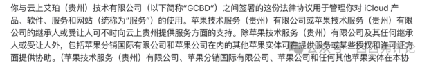 如果我們細看一下蘋果icloud裏面的用户協議,會發現,其實蘋果和雲上艾珀的合作,比TikTok和Oracle的合作更深。Oracle只是TikTok的雲服務提供商。但iCloud中國業務本身就是雲上艾珀運營,中國用户的數據,屬於雲上艾珀而不是蘋果,蘋果只是有權按照協議,訪問中國用户的數據,並通過iOS系統給中國用户提供服務。