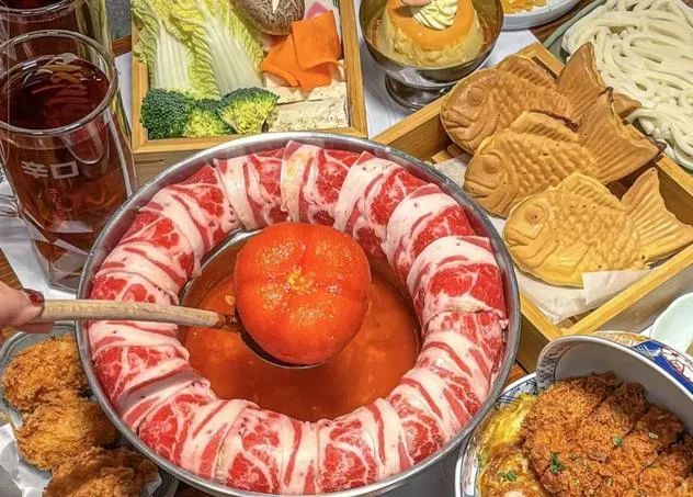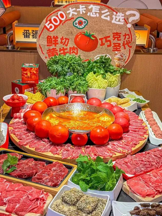 最近,火鍋餐見發現,重慶的番疆番茄牛肉鍋,把番茄做成了點睛之筆,創新出了游泳圈牛肉,門店把番茄、番茄鍋底、牛肉進行創新擺盤,首先從觀感上讓紅色有了層次,激發顧客食慾,其次,顧客可將沙瓤番茄下入濃濃的番茄鍋中,或是與各類產品做DIY。最後,番茄鍋底、番茄本茄極為出片,讓鍋底或門店更有差異化、記憶點。