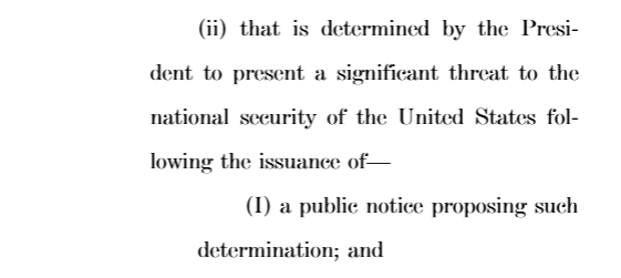 通過的這項法案叫:保護美國人免受外國敵對勢力控制。裏面規定説,如果特朗普覺得某個應用對美國安全構成重大威脅,只需要發佈公開通知,並且提前 30 天向國會提交一份説明,按理來説就可以給它安排上 TikTok 大全套了。