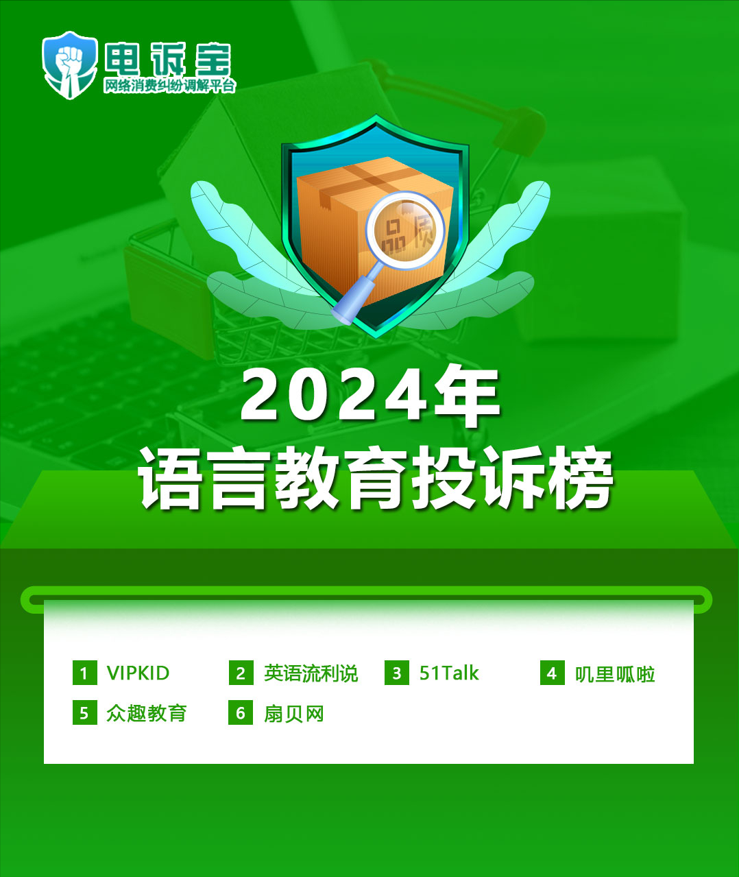 1月14日,網經社發佈《2024年語言教育投訴榜》(依據投訴量排行),該榜單依據國內網絡消費專業消費調解平台“電訴寶”2024年受理的全國海量用户消費糾紛案例大數據生成。根據“電訴寶”2024年受理的語言教育領域用户有效投訴顯示,入選在線語言教育投訴榜為:VIPKID、英語流利説、51Talk、嘰裏呱啦、眾趣教育、扇貝網。