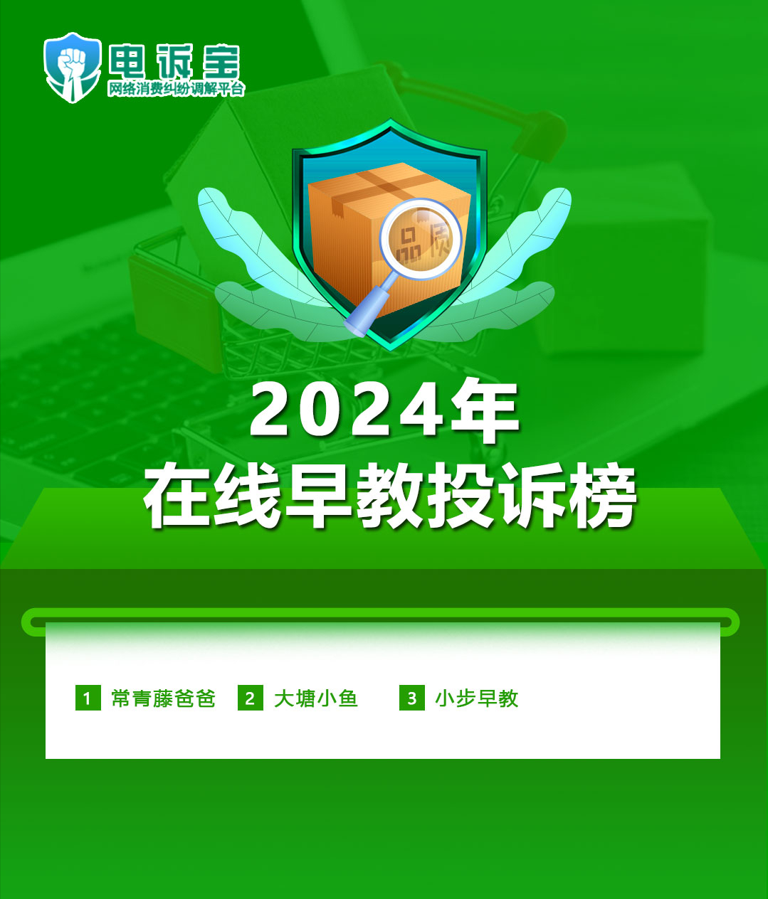 1月16日,網經社發佈《2024年在線早教投訴榜》(依據投訴量排行),該榜單依據國內網絡消費專業消費調解平台“電訴寶”2024年受理的全國海量用户消費糾紛案例大數據生成。根據“電訴寶”2024年受理的在線早教領域用户有效投訴顯示,入選投訴榜的依次為常青藤爸爸、大塘小魚、小步早教。此前叮噹學堂、麥淘親子、七田真早教等早教平台也遭遇過類似投訴。
