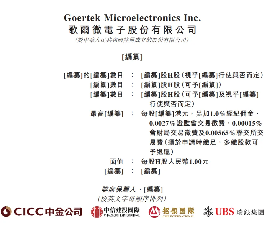 據港交所1月20日披露,歌爾微電子股份有限公司向港交所主板提交上市申請書,中金公司、中信建投國際、招銀國際、瑞銀集團為聯席保薦人。