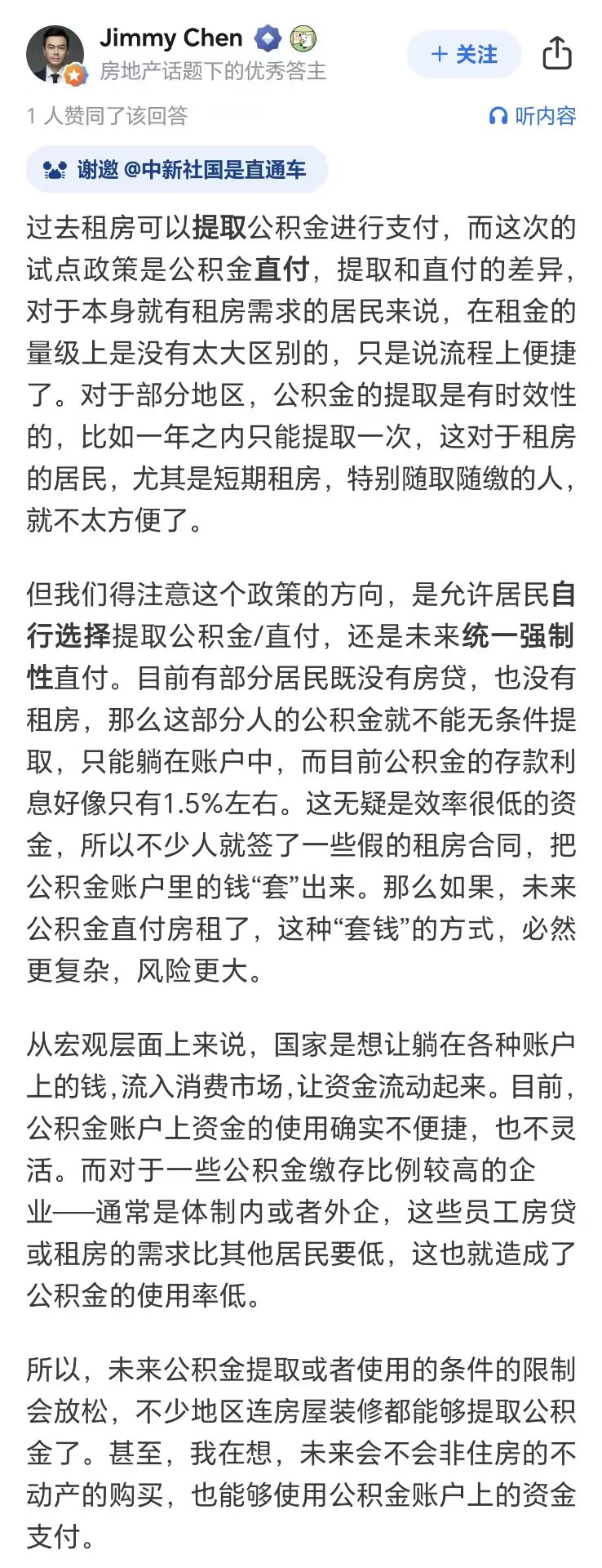 還有人認為此舉讓公積金提取變得更加便捷,但是該政策方向是允許居民自行選擇提取公積金/直付,還是未來統一強制性直付。