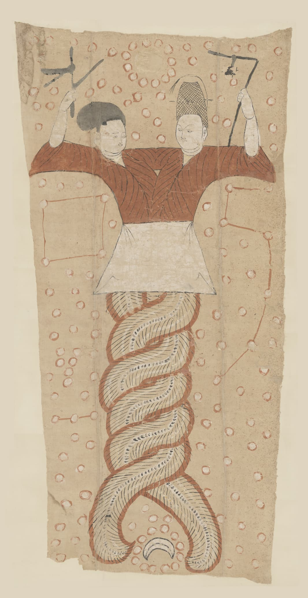 原始社會的先民將能夠蜕皮重生的蛇視作“再生”“繁衍”的象徵,中國神話中的創始神女媧和伏羲人身蛇尾的形象便融入了蛇的特徵。