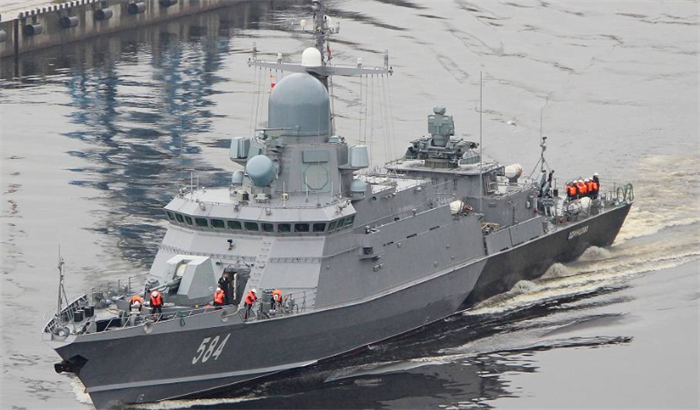 其實這樣一看的話,並不難理解。22800型小型導彈艦,是個典型的小船扛大炮的產物,800噸級別的小身板上,居然扛了1門AK-176M型76毫米艦炮,1座艦載Pantsir-S1點防空系統。最令人咋舌的是,還帶了8聯裝3S14型通用垂直髮射系統,可以發射P-800反艦導彈或者3M14口徑巡航導彈。