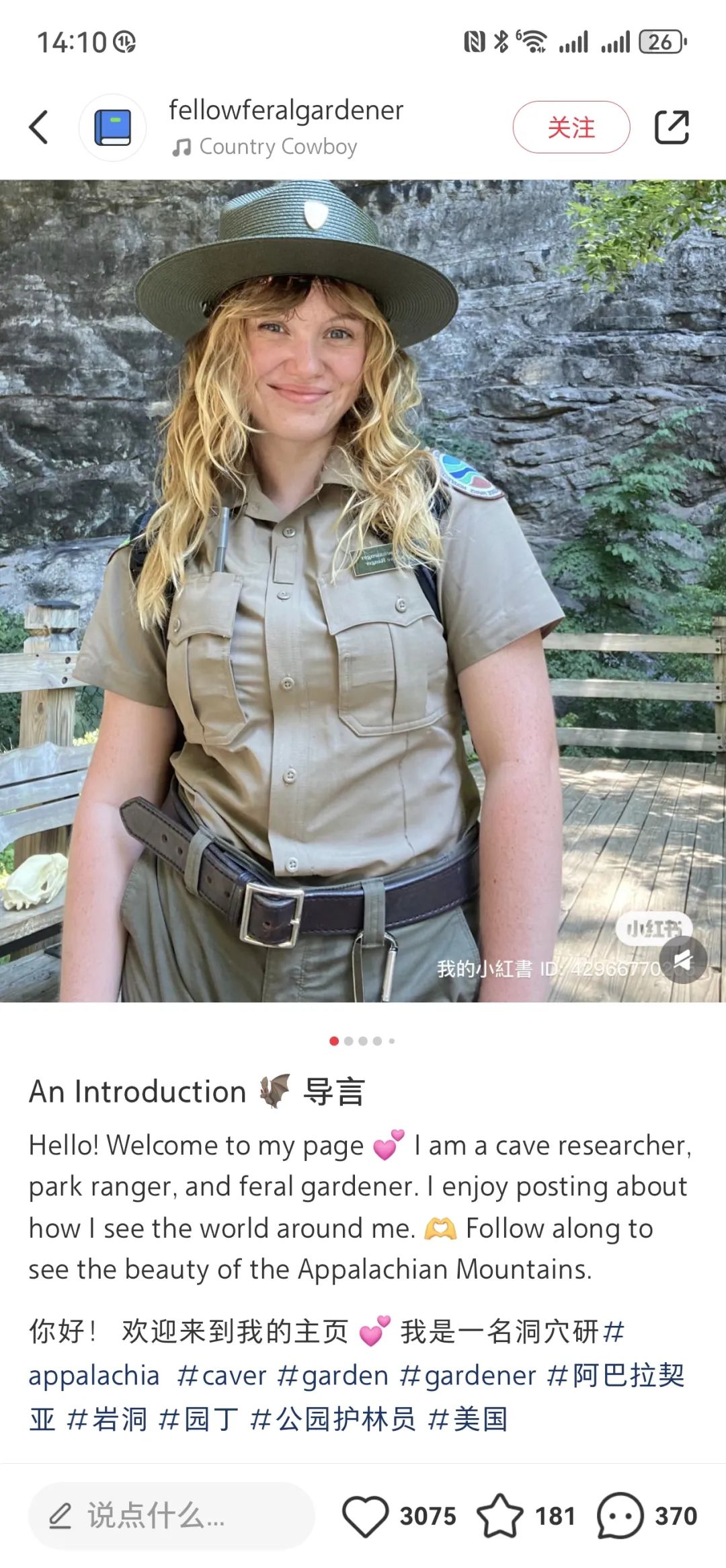 評論區眾多中國用户競相展示他們洞穴探險的精彩照片,引來一片讚歎。**更有不計其數的網友滿懷好奇,紛紛向這位美國女護林員提出關於其工作的詢問。**面對這些熱情洋溢的提問,她展現出了極大的耐心,逐一細緻地回答,不僅分享了自己寶貴的工作心得,還慷慨地傳授了諸多專業知識,令整個交流過程充滿了互動與學習的氛圍。