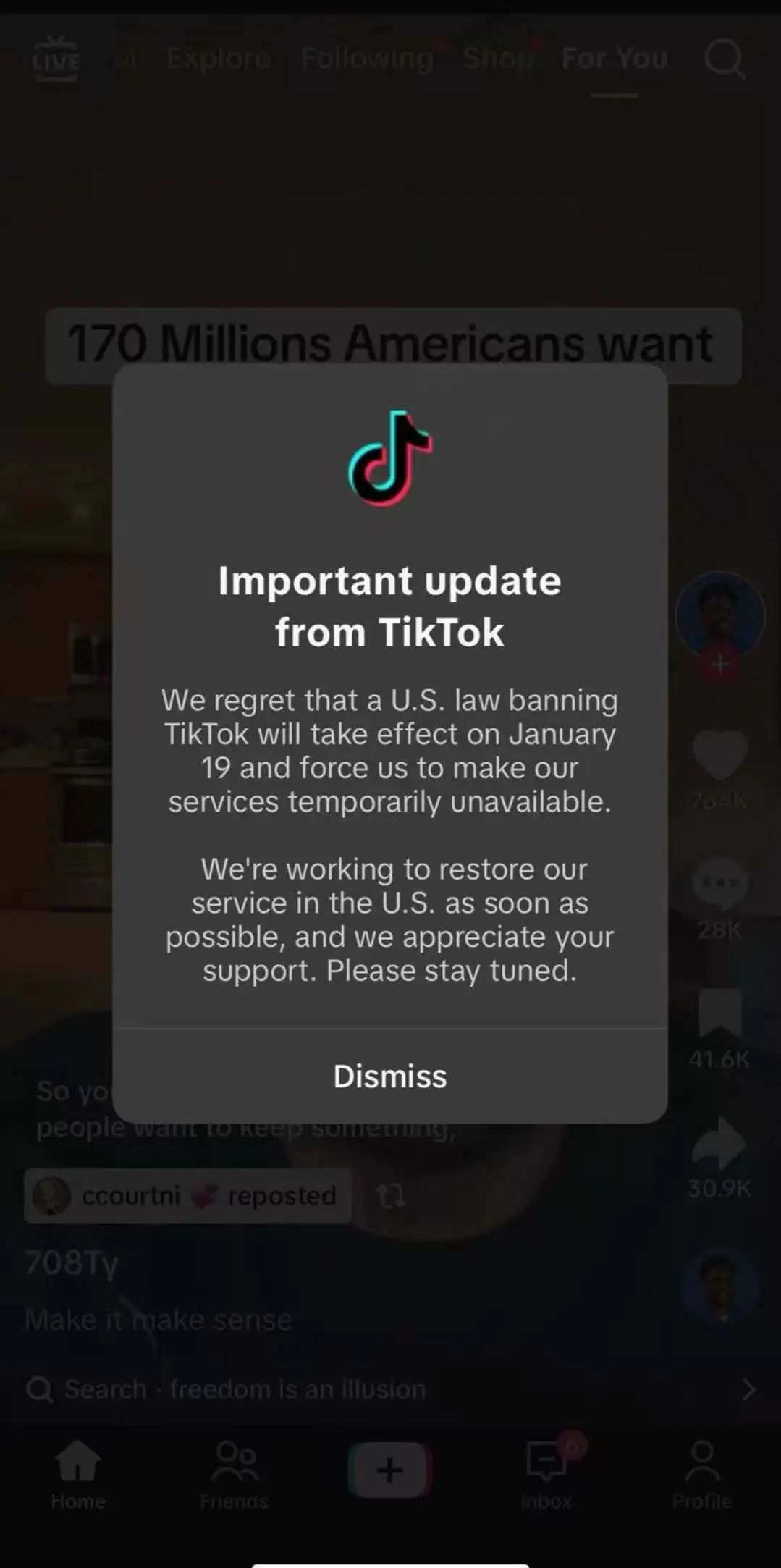 19日(當地時間)當天,TikTok向美國用户推送暫停服務通知,停止在美服務。但一天之後就是美國聯邦政府權力交接的日子,懂王正式二進宮,TikTok又恢復了在美服務。