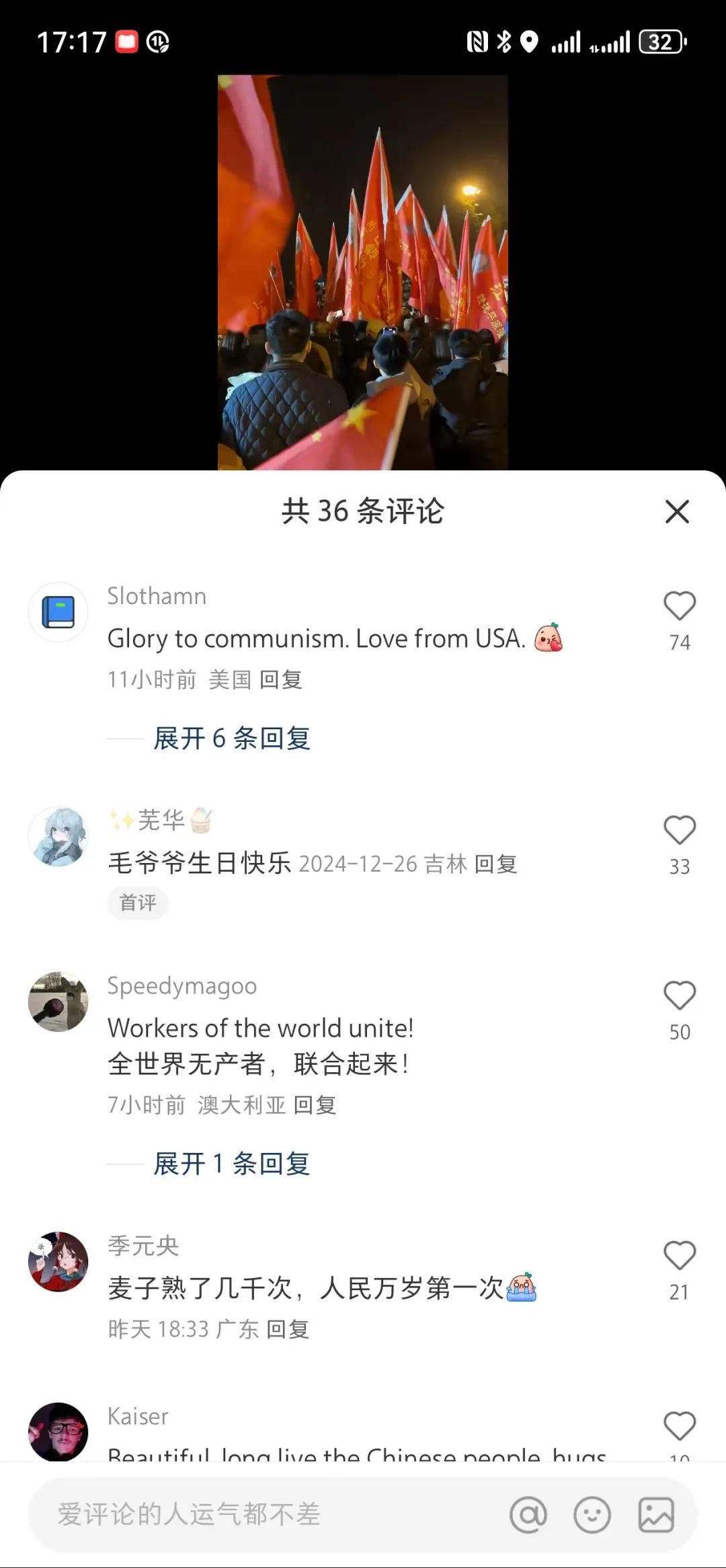 因為這次來小紅書的還有一些美國共產主義者,其中很多都是教員的忠實粉絲,他們在這裏分享他們閲讀的英文版《毛選》或者《毛澤東傳記》。