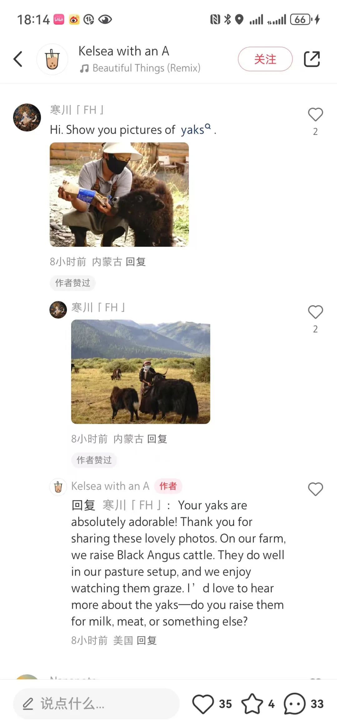 很快,評論區就有內蒙古的牧民在評論區截圖分享自家養殖的犛牛日常,雙方交流很愉快。