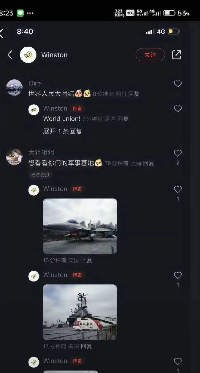 甚至軍事基地內部停放的戰機他們也樂於分享給自己的中國粉絲們。