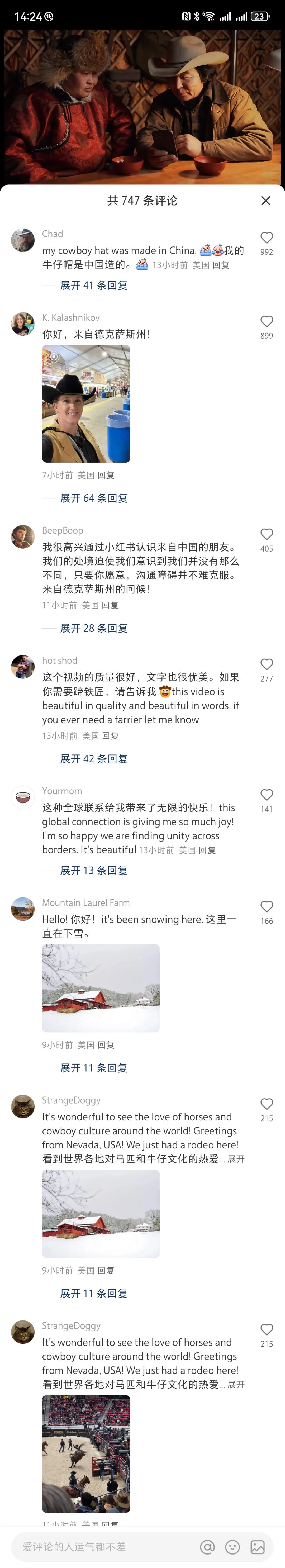 於是,這位蒙族大哥也儘快給自己的視頻加上了英文字幕,美國牛仔們也興奮地在評論區熱情問候大哥,並附帶上了自己的生活日常照片。