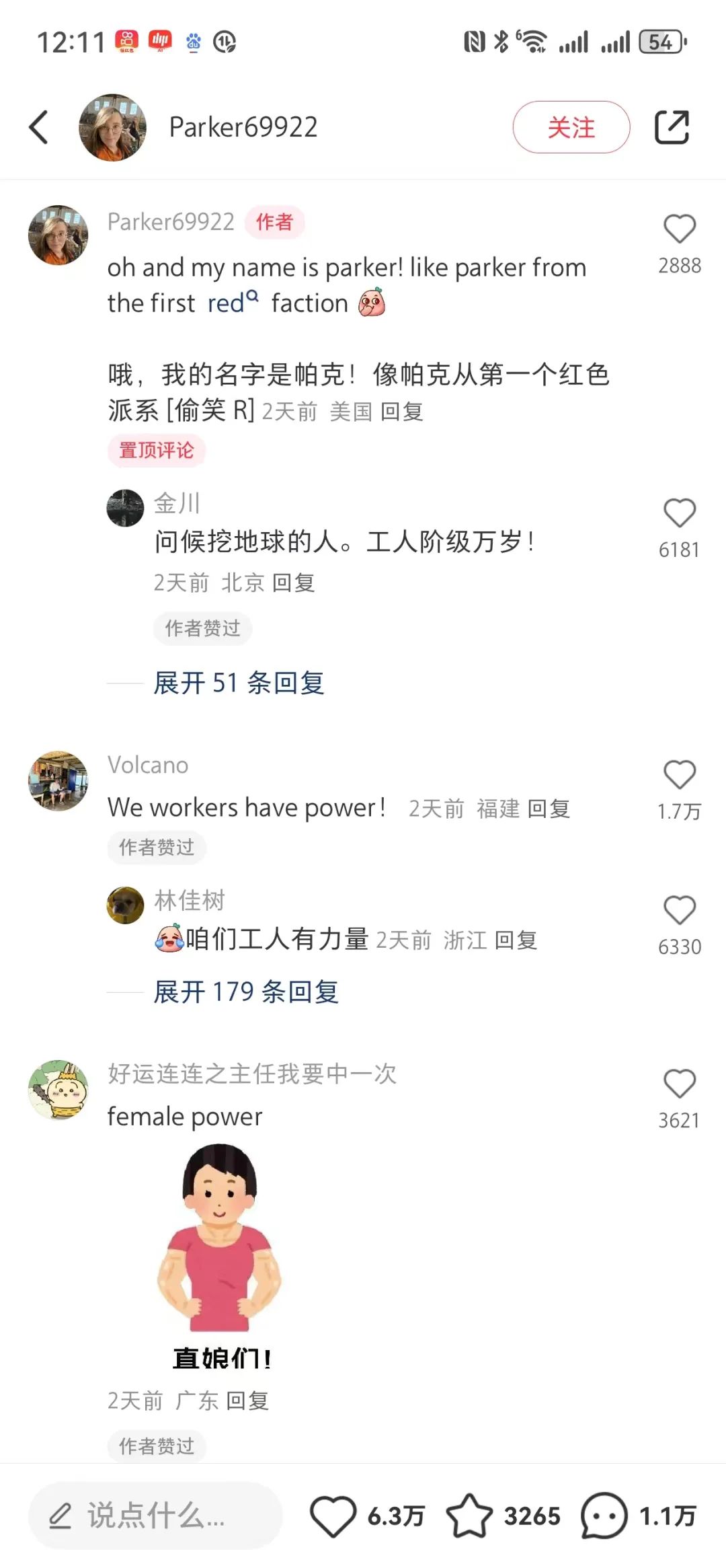 而中國網友們的一句:“咱們工人有力量”也讓這位美國礦工大姐十分認可。
