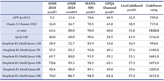 然後在此基礎上,不是自己蒸餾小模型而是用幾個最流行的開源框架蒸餾出來了幾個最合適尺寸的模型。所有這些都開源給外界參考和使用。