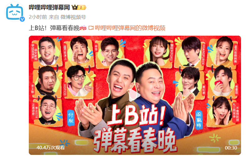 1月9日,嗶哩嗶哩(下稱“B站”)宣佈與中央廣播電視總枱《2025年春節聯歡晚會》達成合作。