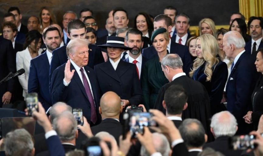 美國東部時間1月20日中午,特朗普在國會大廈圓形大廳宣誓就任美國第47任總統。