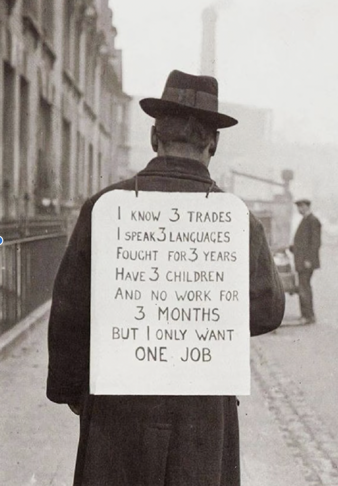 “懂3種手藝,會講3種語言,有3年工作經驗,有3個孩子,只想要1份工作。”20世紀30年代,美國經濟危機爆發,四分之一人找不到工作。