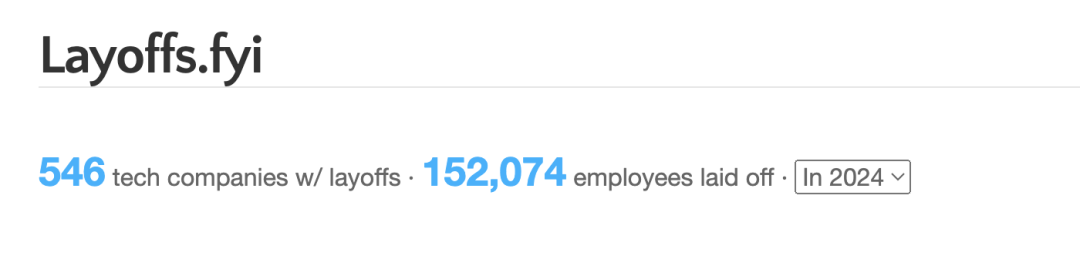據裁員追蹤機構 Layoffs.fyi提供的數據,2024年全球科技公司至少裁員15.2萬人,裁員潮幾乎席捲了整個行業。