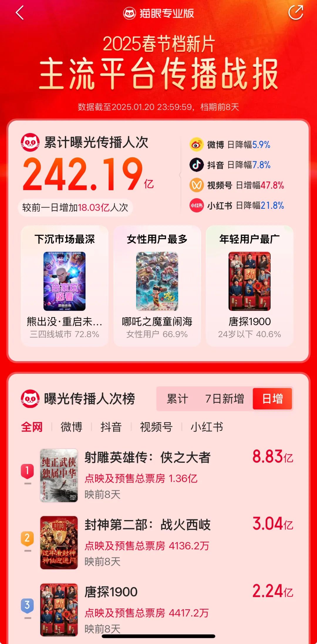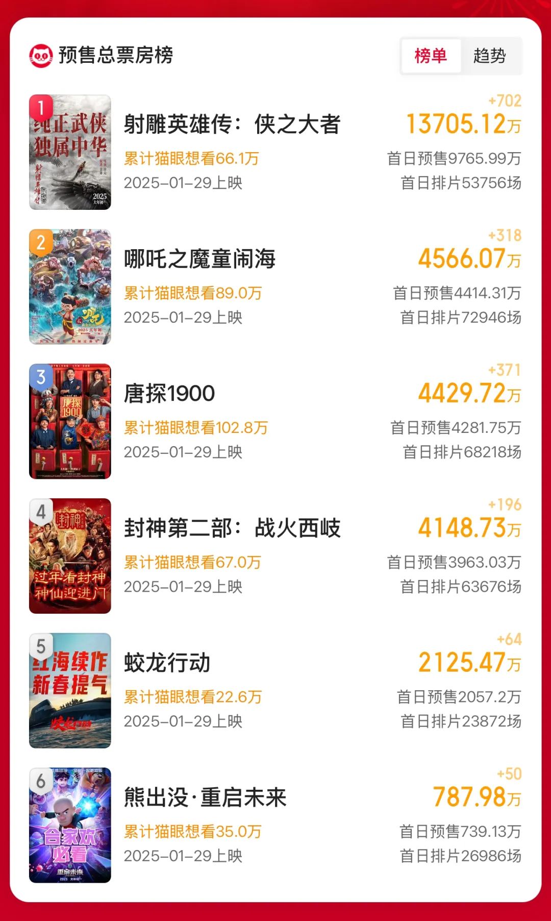 2025春節檔,從全民熟悉的武俠經典《射鵰》、到五年才盼來的《哪吒》、曾經票房創佳績的《封神》、喜劇類大IP《唐探》、中低齡孩子最愛的《熊出沒》、以及弘揚主旋律的《蛟龍行動》,每一部都是投入大量資金和資源創作的影片。