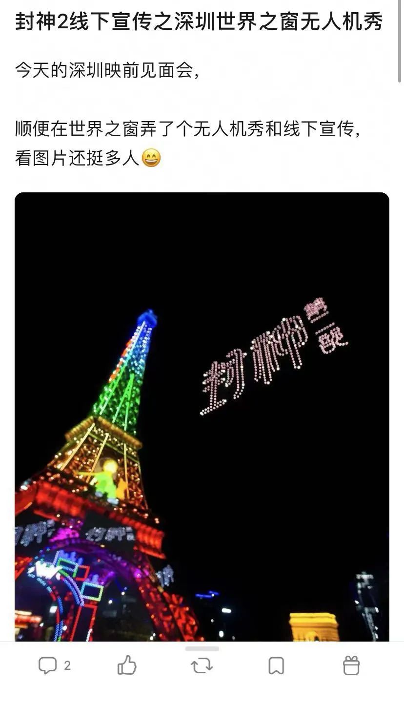 深圳世界之窗用無人機為《封神2》做宣傳,不少遊客駐足拍照。上海地鐵站裏和公交站台上赫然出現《射鵰》的廣告。更有網友表示,自己孩子的幼兒園發了《熊出沒》的塗色卡,可以説今年的傳播滲透,無處不在。