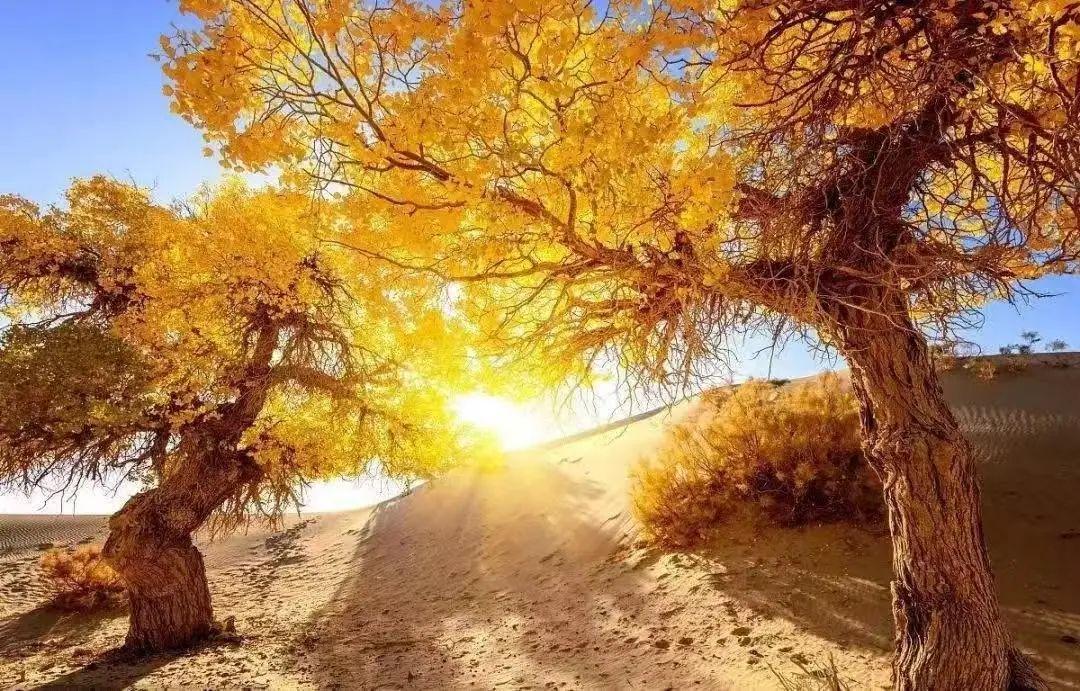 傍晚時分,夕陽的餘暉將天空染成橙紅色,你可以驅車前往塔里木河畔,親眼見證胡楊林在夕陽下綻放出的金黃光輝,那份震撼與感動,定將久久難以忘懷。