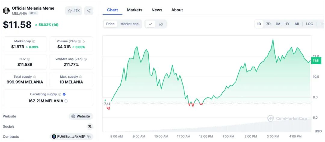 |“特朗普幣”和“梅拉尼婭幣”19日走勢 數字貨幣交易平台Coinmarketcap