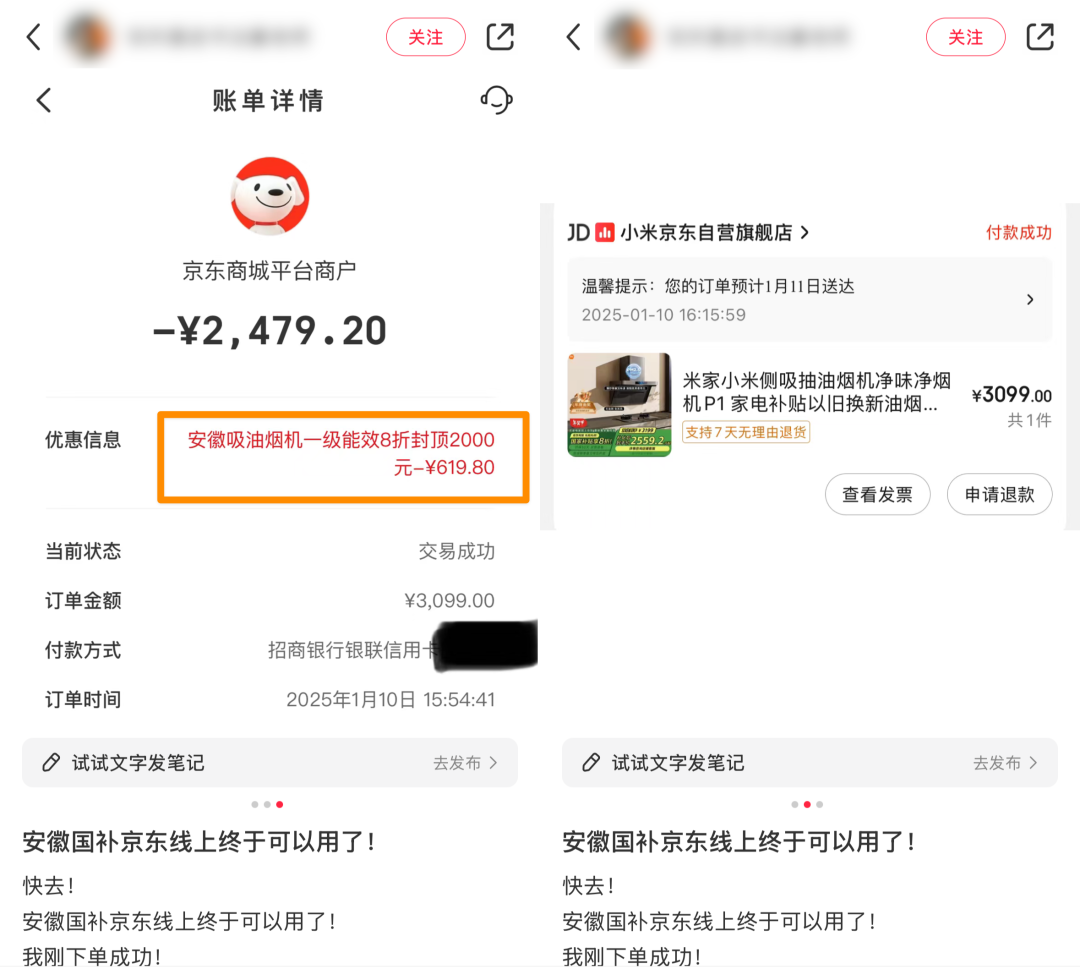 比如一位安徽網友剛用 2400 元買到小米油煙機 P1 ,就跑來小紅書分享了。
