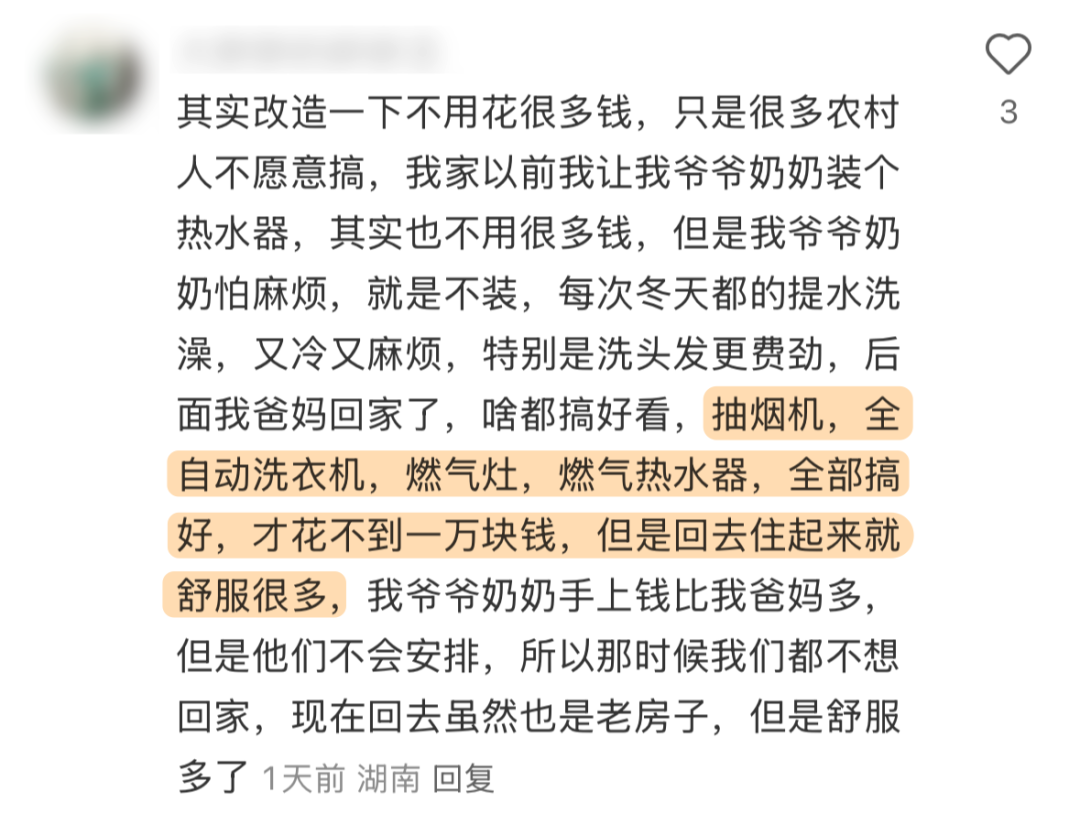 不過有一點,差評君覺得還挺新鮮的,就是**難以適應老家的生活習慣。**比如衝熱水澡不方便,洗衣機不是全自動,洗碗太累人。