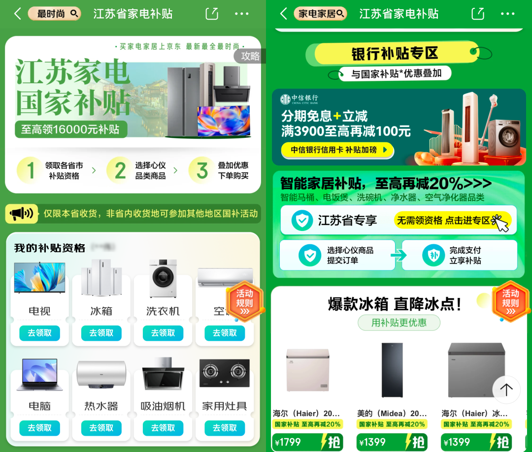 拿江蘇國補舉例。今年江蘇國補在 1 月 1 號就上線京東了。