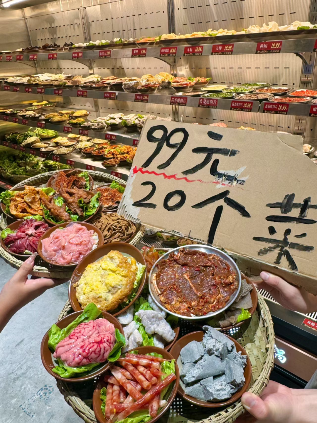 拿地攤牛排來説,產品足量夠多,99元套餐,熟肉二斤三兩,外加幾十種涮菜,產品的“多”成為顧客願意嘗試、復購的重要因素。大眾消費的特點就是這樣,希望花同樣的錢,買到更多產品。