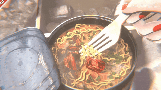 在這場新春會上,語言類、歌舞類節目甚至是節目之間的插播廣告都一應俱全。先拿《黑冠之鄉泡麪》這則插播廣告來説,短短不到2分鐘,卻有11位創作者參與其中:特效、分鏡、3D輔助、設計、音樂……最後呈現出的質量也很出色,不僅各類neta充足,單純作為一個廣告視頻也相當夠格——產品特色和定位準確,又有着吊人胃口的巧妙節奏感。