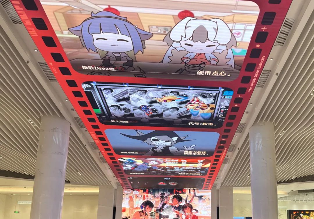 觀影會現場的天幕,滾動播放往屆新春會的單品節目