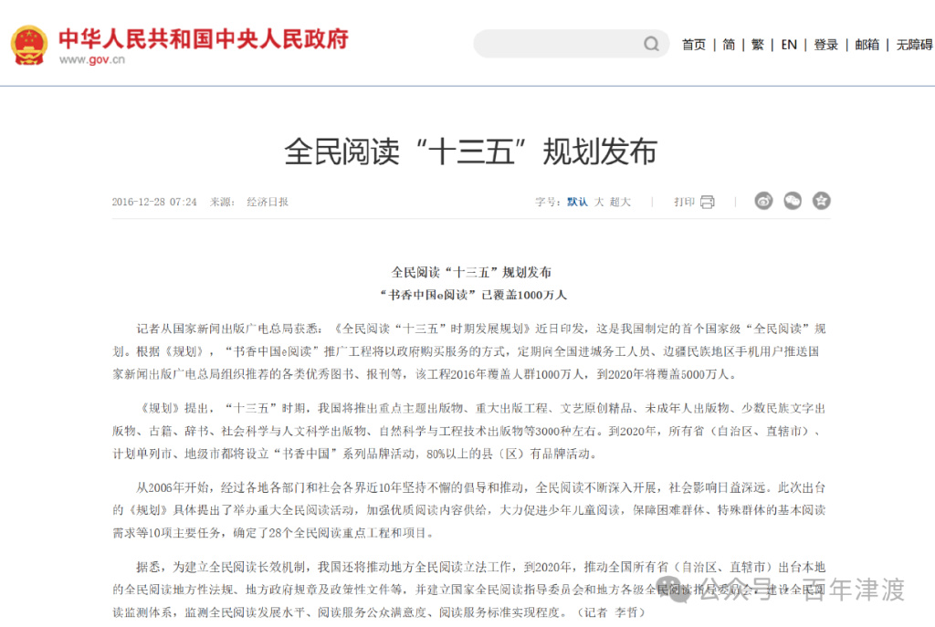 國家一直在推進全民閲讀計劃