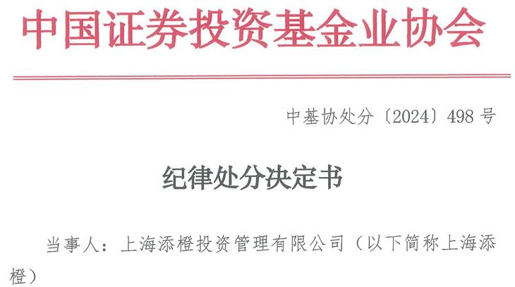 日前,中基協公佈了對上海添橙投資管理有限公司(以下簡稱“上海添橙”)的紀律處分決定書。
