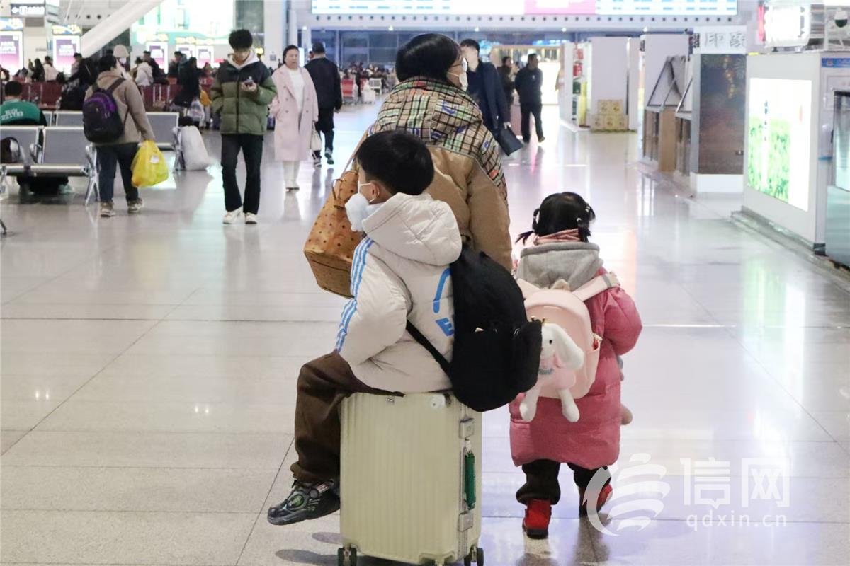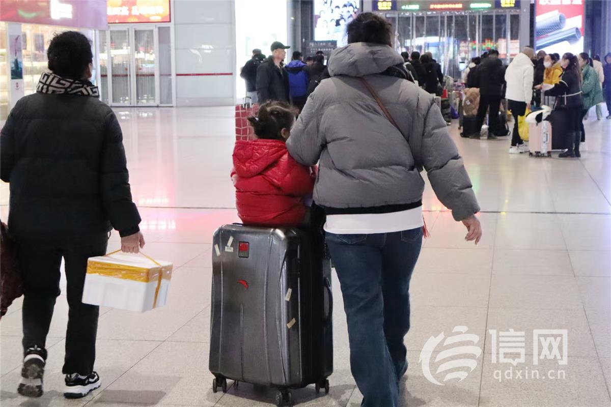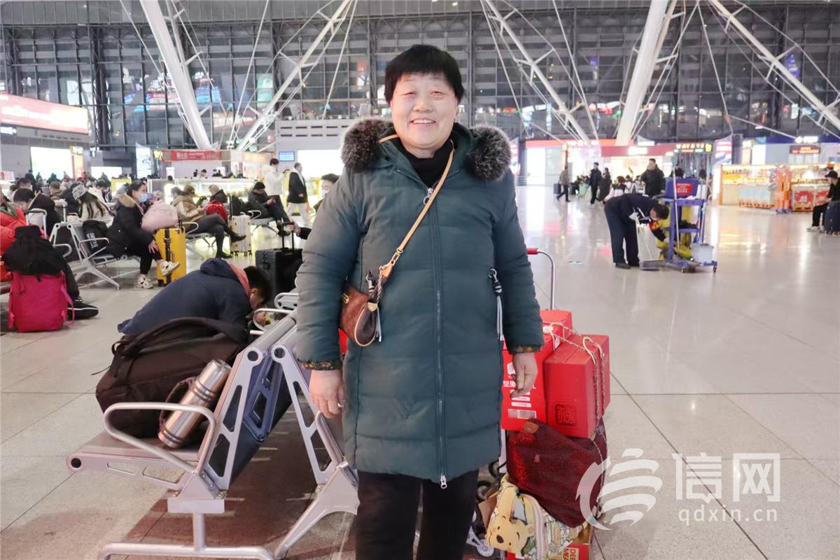 春運途中,不僅有忙碌了一年回家的人,還有跟着孩子在青島“享福”的人。曲阜的李女士説:“兒子在青島定居,讓我來住,我也不用幫着看小孩。快過年了,我先回老家,兒子過兩天再回。青島很好,風景好空氣也好,離老家高鐵三個小時,過完年我還來。”