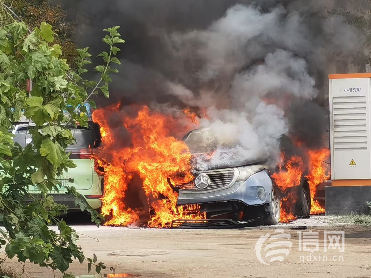 2024年10月21日,賈女士的奔馳EQC 350電動汽車在嶗山區一小桔充電站充電時突然發生自燃。“當時我正在車後排休息,即將充滿電的車輛突然發出異響,隨後車內冒出濃煙。我趕緊跑下車,結果不到10秒車輛隨即發生爆炸,就着了火,還連累了旁邊的一輛比亞迪車。”
