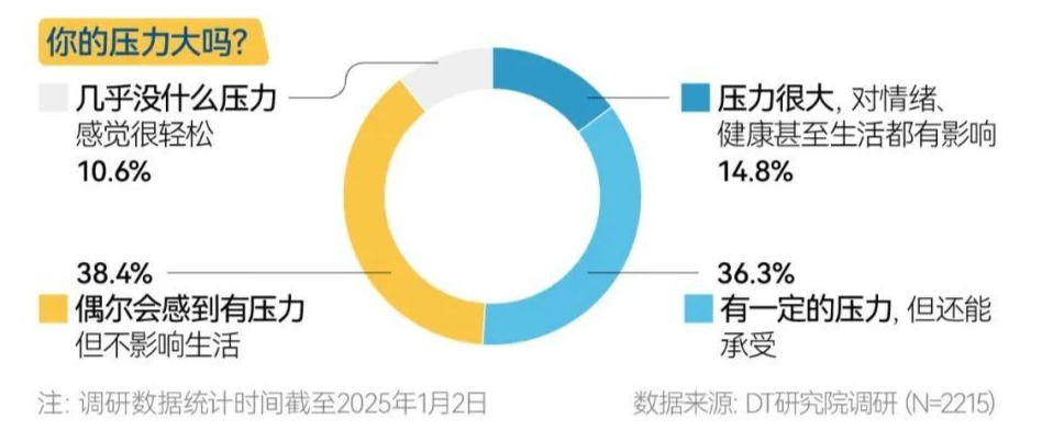 近日,DT商業觀察發佈的《碎銀時代下的情緒紅利-2024生活趨勢洞察報告》,為這種現象提供了一個註解:在經濟增速放緩、就業壓力加大的背景下,90%的年輕人表示感受到不同程度的壓力,其中14.8%的人已處於“壓力過載”狀態。