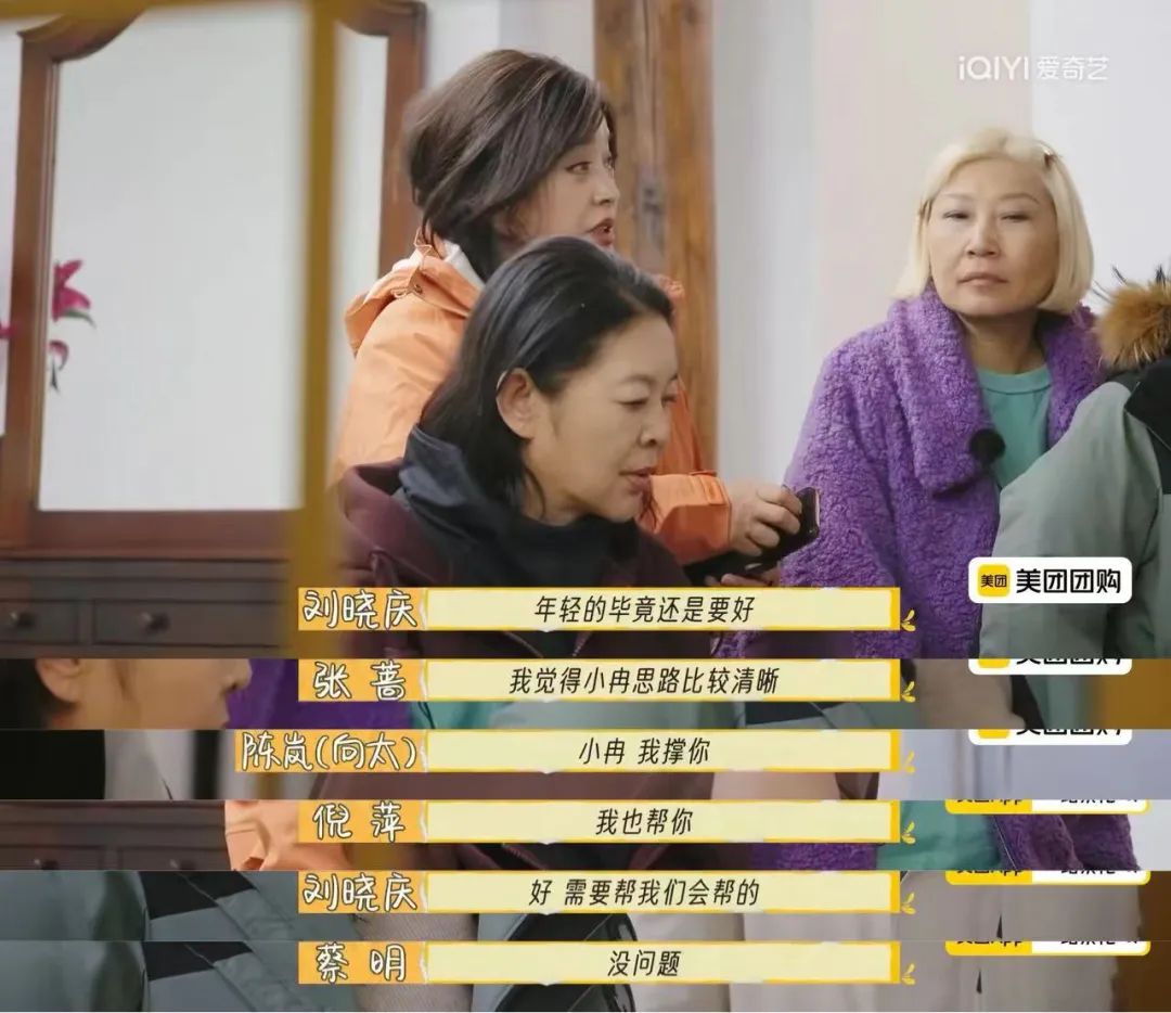 在衣食住行的總體任務下,則是職場劇式的任務處理,有明顯的年齡、閲歷、資源三級分層。閲盡千帆的劉曉慶、倪萍、蔡明、向太是董事局成員,項目掛名但難以全程死盯。須知,董事的存在有時就是表態,你不能真喊着人家打卡做任務。
