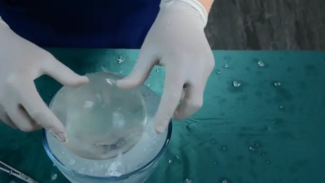 他把隆胸用的硅膠浸沒在水裏,然後放到零度的冰箱裏凍一週。