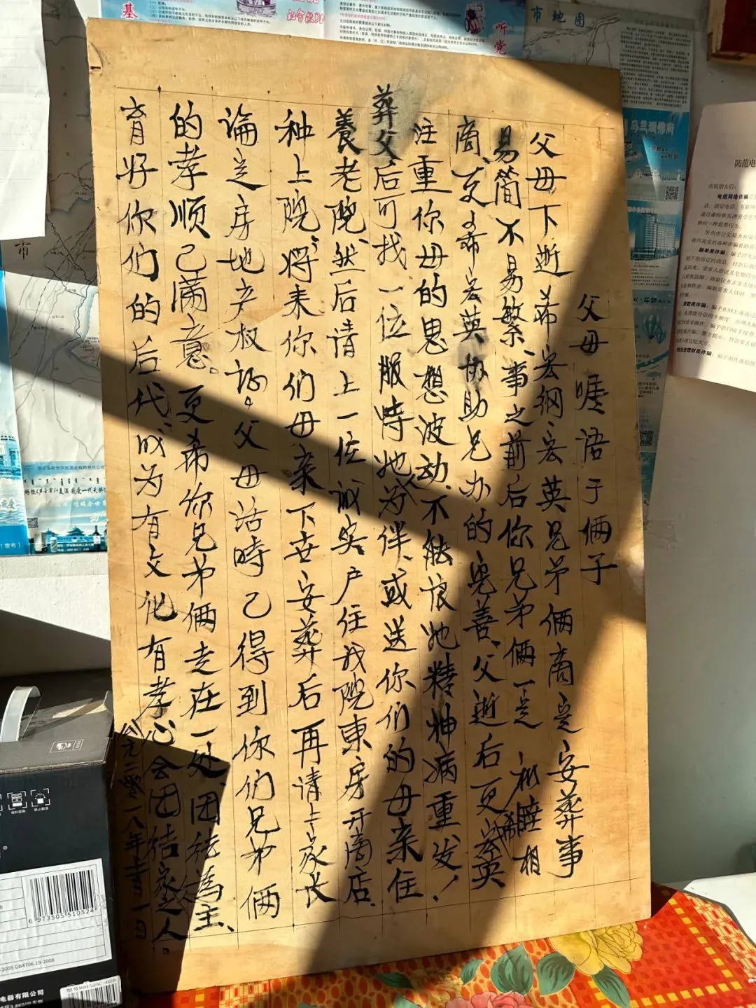 安葬父親後,兩兄弟完成了這篇《憶父文》,寫道:“滿院都是您有温度的字跡,父母之愛子,為計之深遠,讓我垂淚滴血……最大的遺憾是我們沒有足夠的時間陪伴您,現實就是這麼殘酷,抱起磚頭就沒法背您老人家啊。”