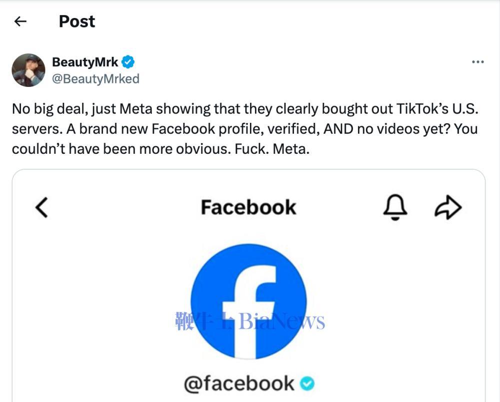 但就在恢復服務後,「Meta買下了TikTok在美國服務器」的謠言開始在X平台上傳播。